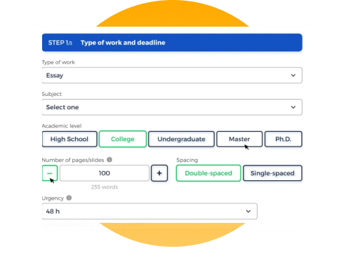 Choose your academic level, type of work, deadline, and word count to get a quote. And don't forget to claim your 15% discount if it's your first order.